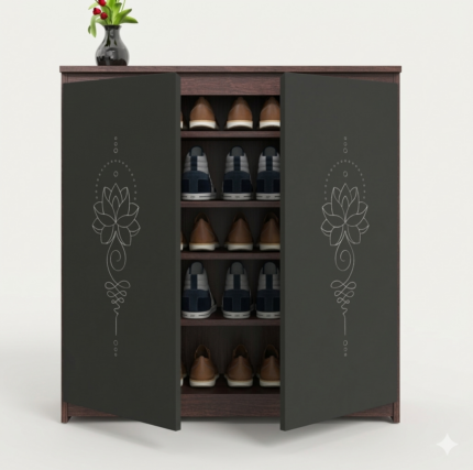 Spacious and durable wooden shoe rack cabinet with multiple shelves and doors, ideal for keeping footwear organized and dust-free.